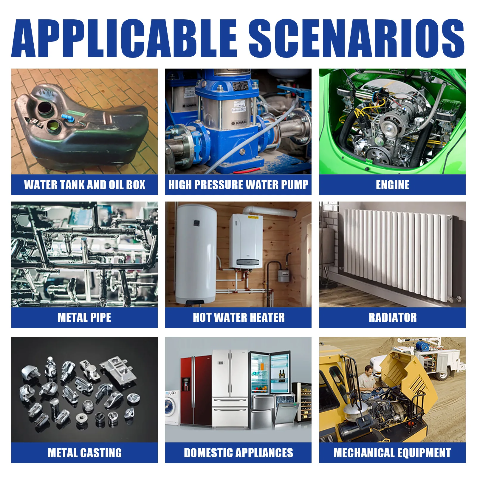 Fuel tank water tank, machine parts, radiator, high pressure water pump, door handle, metal pipe, machine engine, faucet repair, water valve joint, etc.