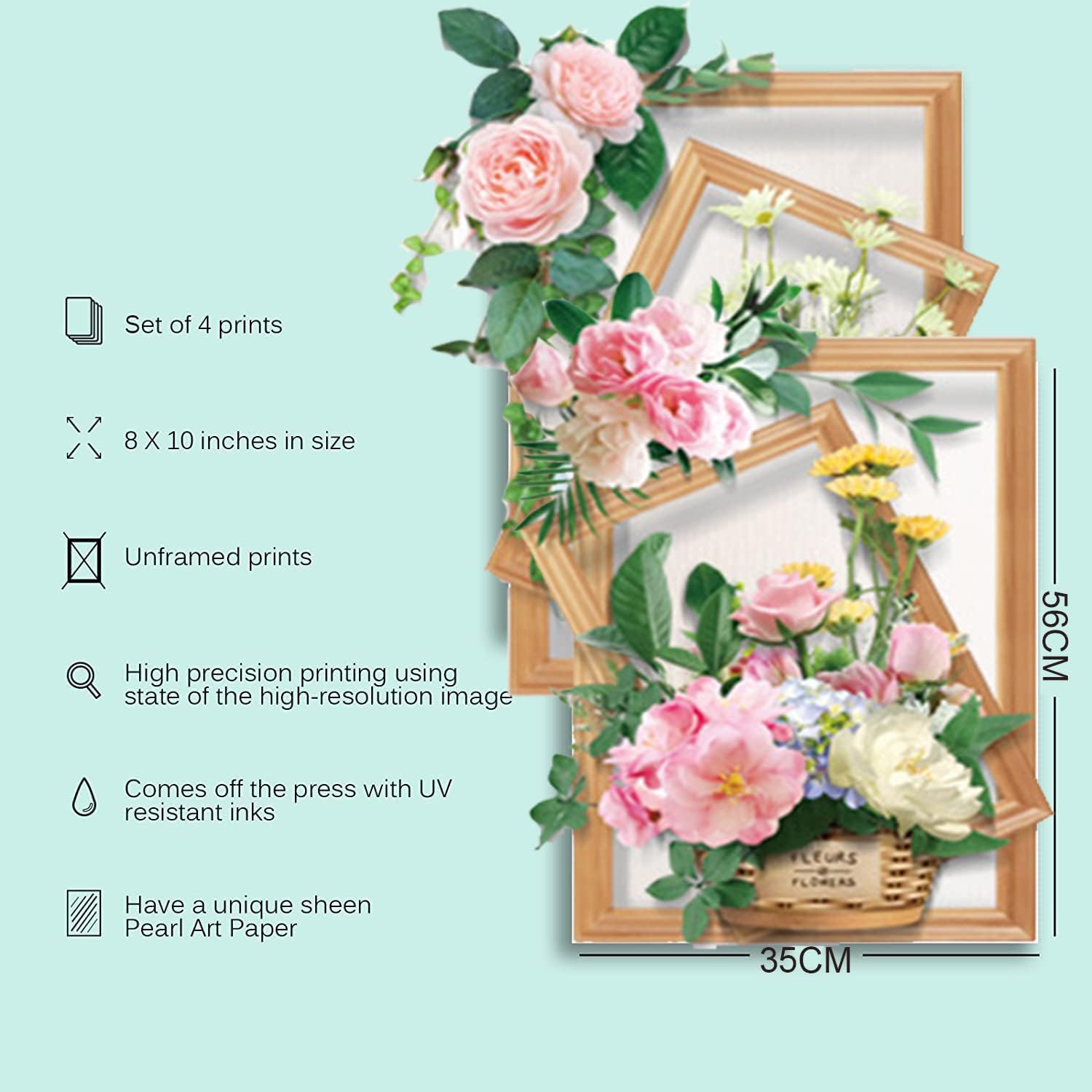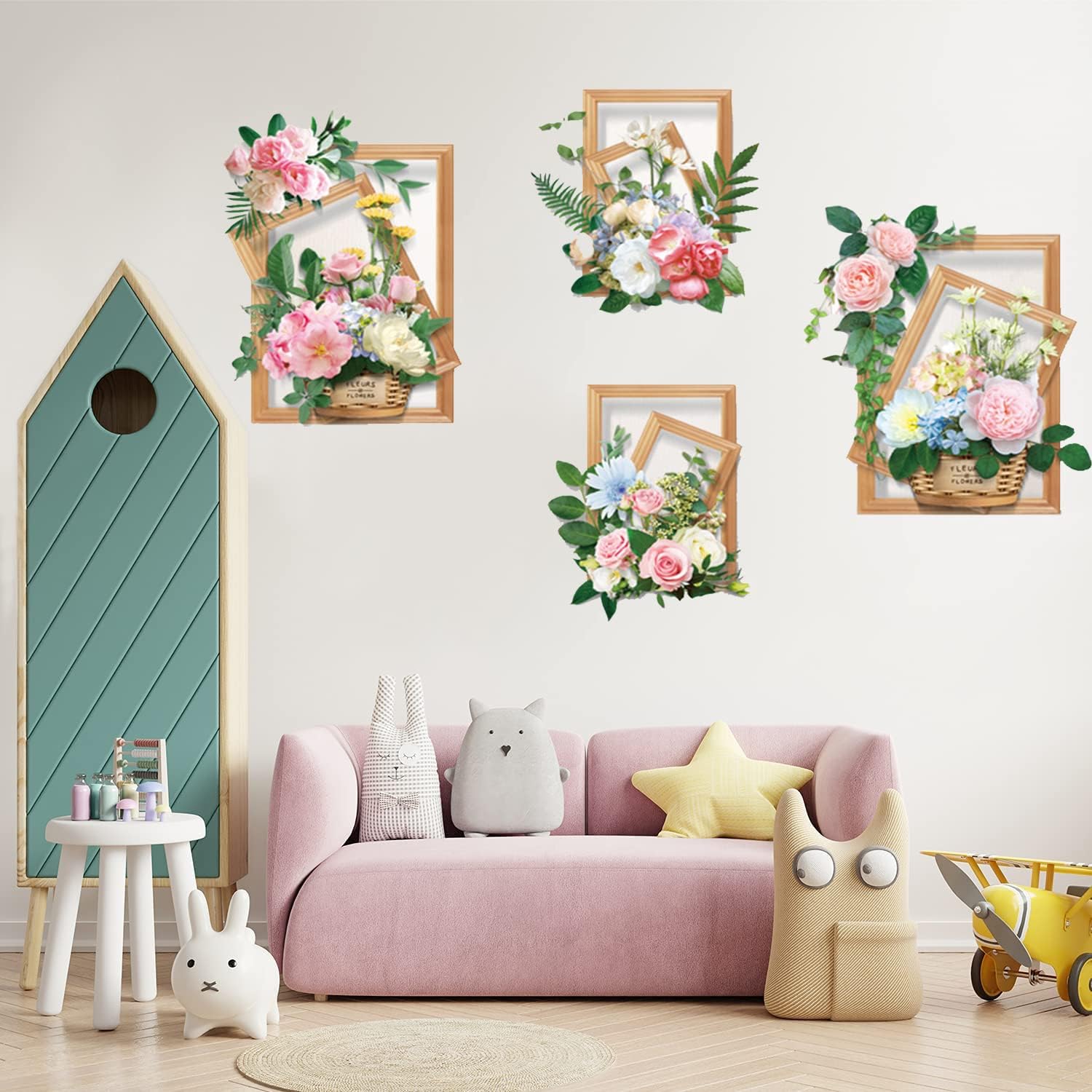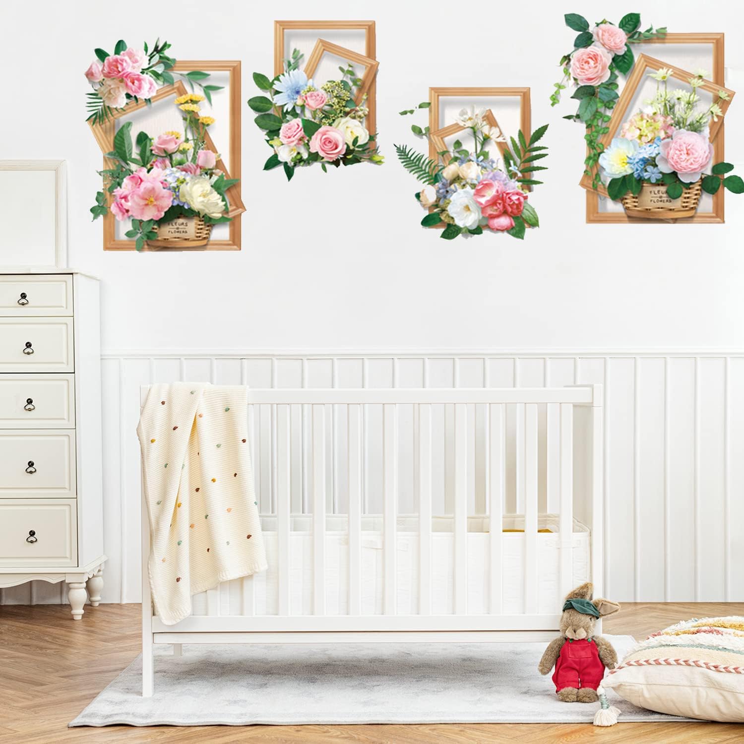 (৪ পিচের সেট) Flower Baskets Wall Stickers DIY Plants