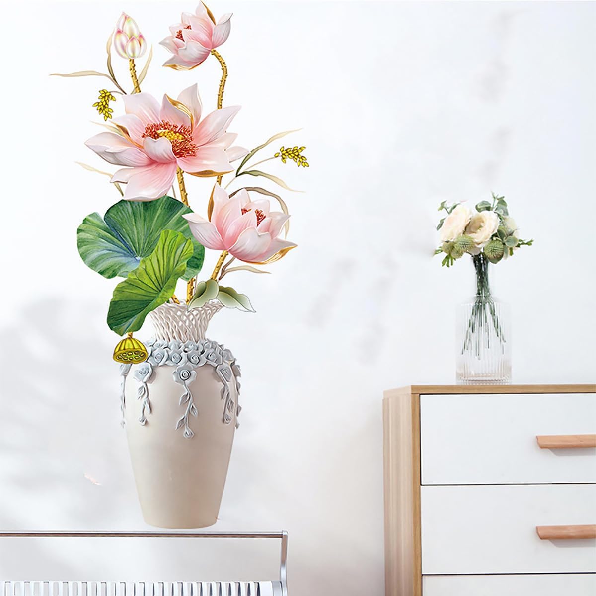 Chinese Style Pink Lotus Vase Wall Stickers Living Room Sofa Porch Background Decoration Self-adhesive Painting